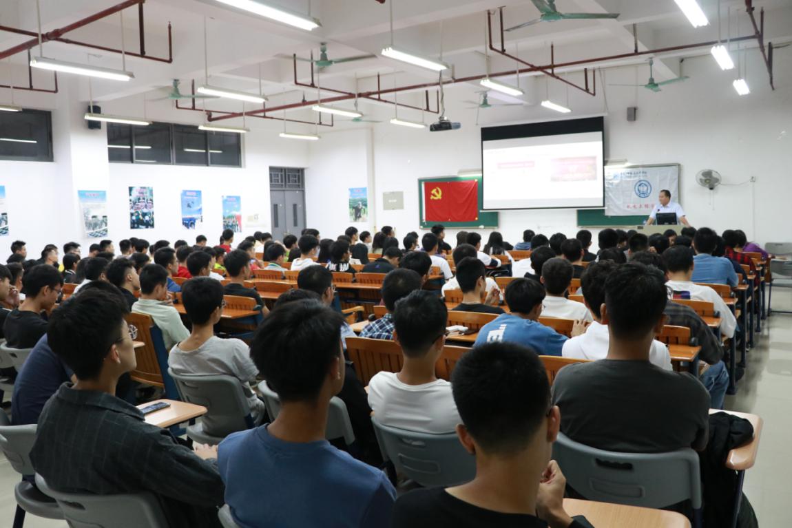 为贯彻落实习近平总书记在学校思想政治理论课教师座谈会上的重要讲话精神,认真落实全省学校思想政治理论课建设推进会精神,2019年10月29日晚7点30分,机电工程学院党总支书记邵超城于明德楼2-101召开书记第一堂思想政治理论课。机电工程学院2019级机器人及智能控制系电气自动化专业、机电一体化专业、机械制造与自动化专业等130余名同学参加此次思政课。