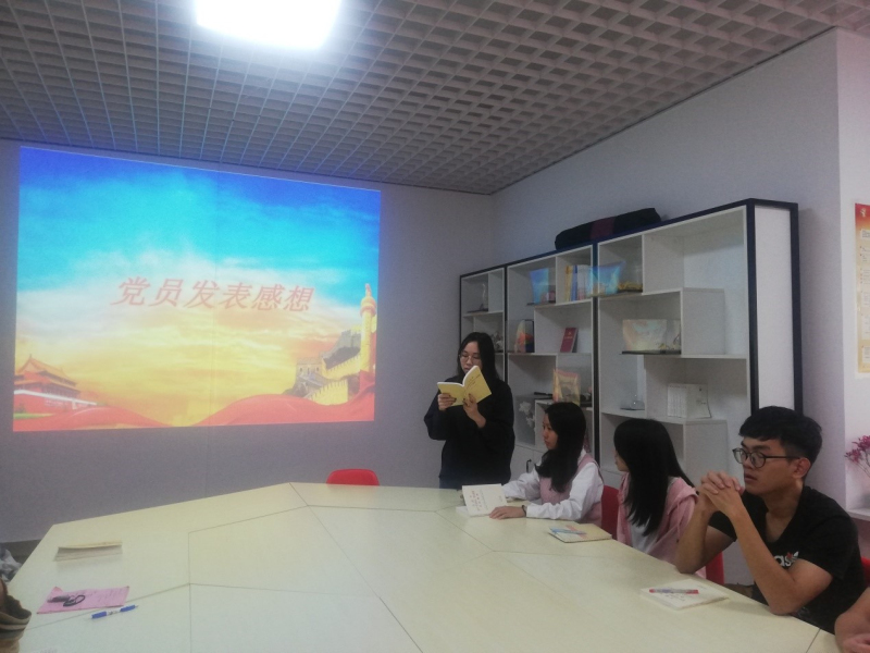 学生党员们交流时说到,党的十九届四中全会精神体现了中国共产党胸怀两个大局,在推动两场革命,要锻造两种能力,要有辩证统一保持充分的自信以及居安思危的两样心态;要深入学习贯彻党的十九届四中全会精神,增强“四个意识”、坚定“四个自信”、做到“两个维护”,努力建设政治合格、执行纪律合格、品德合格、发挥作用合格的党员。让初心薪火相传,把使命永担在肩,切实在实现“两个一百年”奋斗目标、实现中华民族伟大复兴的中国梦进程中奋勇争先、走在前列。