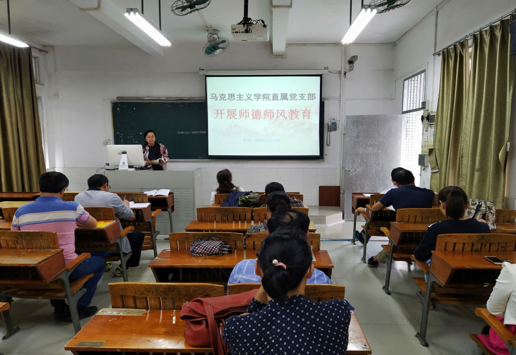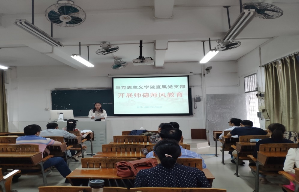 为贯彻党中央“不忘初心、牢记使命”主题教育精神,根据学校统一部署,马克思主义学院直属党支部于2019年11月12日4:10-5:00在东区教学楼201开展师德师风专题教育学习活动。教育学习活动由马克思主义学院直属党支部书记李瑞清教授主持。