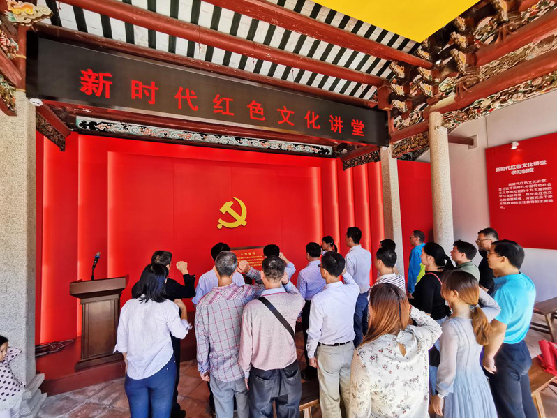 第二天第一站前往汕尾市海丰县红场参加现场教学,大门门额上彭湃同志手书的“红场”二字浮塑在第一时间映入眼帘,提醒着大家这里是中国第一个红色苏维埃政权诞生的地方。置身于红场中,全体党员安静的聆听讲解员的解说,仿佛再一次见证了革命先烈为伟大理想英勇斗争的辉煌场景。