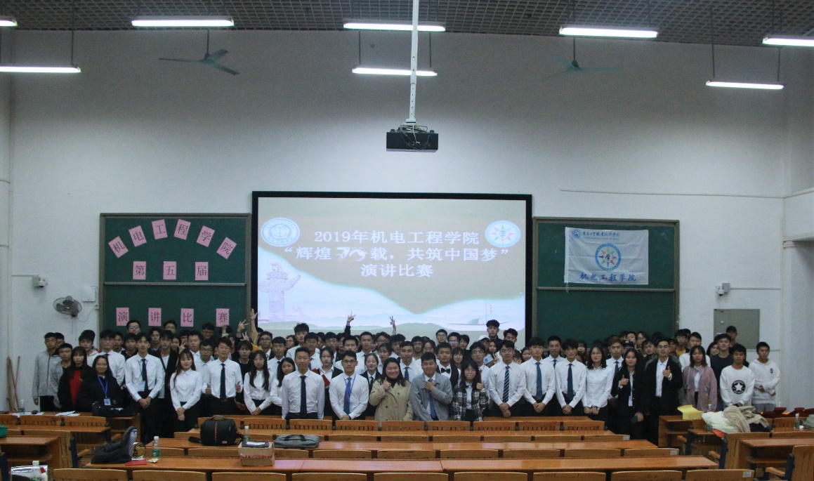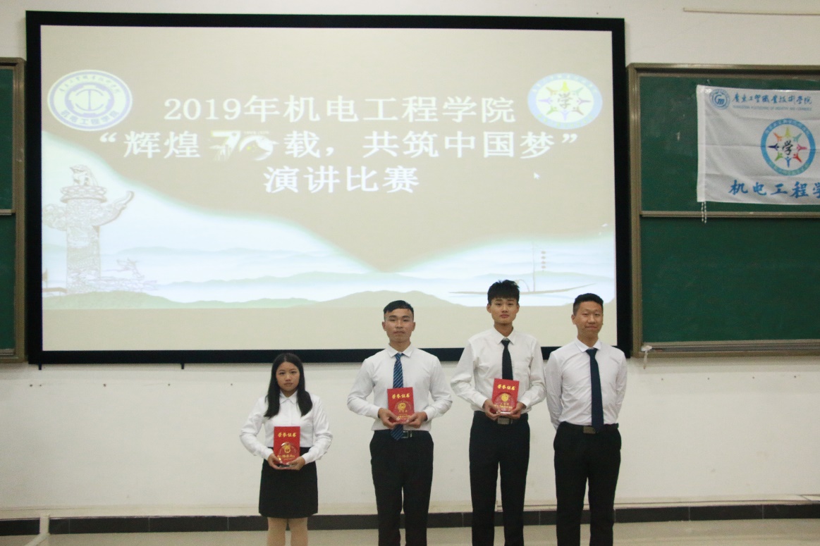 为庆祝伟大的中华人民共和国成立七十周年,展示新中国成立以来经济和社会建设取得的巨大成就,增强全体学生爱国、爱党、爱校的热情,展现师生良好精神风貌,积极营造健康向上的校园文化氛围。广东工贸职业技术学院机电工程学院学生会于2019年12月25日晚上在2区305举行了第五届演讲比赛。出席本次比赛的领导嘉宾有机电工程学院学工办主任严惠琴、机电工程学院吴文婷老师。