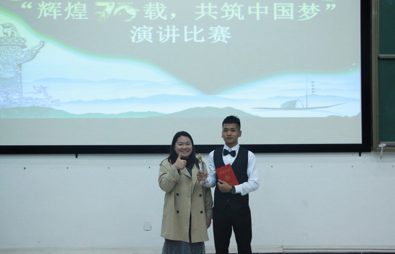 本次比赛共有自信,爱国,筑梦,和平四个主题,出场顺序采用滚动大屏幕抽签决定,这一方式也使得现场比赛氛围更为浓烈。在比赛中,每个选手都各具特色,带着各自的风格色彩,有的豪情万丈,有的真情流露,有的则自信洒脱,每位选手都在舞台上绽放着属于自己的光芒。尤其是19模具4班的冯美燕,在开场中就用自己饱满的热情以及与台下观众互动的方式带动了全场的氛围,而她也就筑梦这一话题从国家引申到自己,引发全场共鸣,且用她那稳健的台风以及坚定的话语感染台下观众及评委;而选手凌建辉的风格则与他人大相庭径,他用激情澎湃的演讲赢得在场观众多次掌声,也用充满激情的声音传递了自己的爱国之情。比赛在选手们的精彩演讲中落下了帷幕,最终由评委们的评分进行数据统计,再给获奖选手进行颁奖,小小的奖杯包含的不止是荣誉,更多是选手们对本次比赛认真态度以及对自身能力的展现,而没获奖的选手也从中积累了经验,希望在接下来的比赛中再接再厉,超越自我!