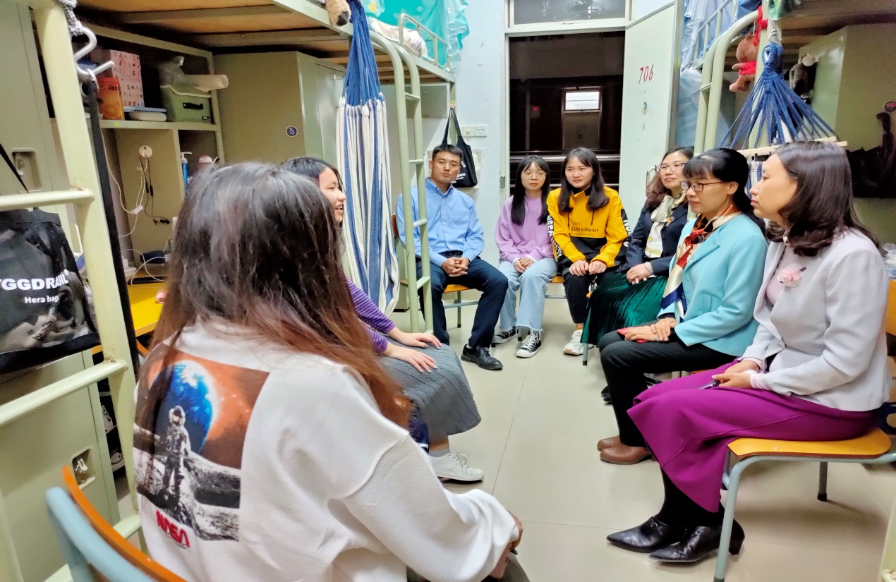 检查调研宿舍过程中,学院领导与同学们促膝而谈,详细询问大家学习和生活点滴,征求大家对宿舍管理和服务的意见,并叮嘱同学们在宿舍要注意人身财产安全,在学习的同时要注意提高自我保护的意识。与同学们就实习就业、日常学习、消防安全等进行交流。
