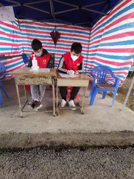 18地信5班的赵初锋,于2月12号开始在潮州市潮安区凤塘镇书安路口疫情防控关卡处参加志愿活动,主要工作是对过往人员进行体温测量,对外地车辆以及外来人员进行登记处理。“作为一名大学生,更作为一名入党积极分子,在疫情面前,我更应该挺身而出,向正式党员以及优秀工作者们看齐,为家乡防疫工作尽自己的绵薄之力。”虽然在志愿工作中会遇到极少一部分过往人员的不理解,会遇到恶劣天气,但赵初锋同学觉得能以自己的行动,为家乡人民健康出一份绵薄之力,心里总是充实着,自豪着,在接下来的日子里,他会继续这份志愿工作,盼望着疫情早日结束!