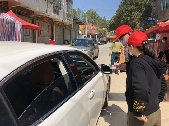 18工测4班的谭仪欣,疫情发生后,她在自己的家乡广东省韶关市仁化县成为一名光荣的共青志愿者。烈士纪念碑山下,她认真的检查自己所负责的疫情防控关卡,对过往的行人车辆进行排查、登记、体温测量以及派发张贴疫情防控宣传资料等工作,坚决不放过每一个潜在性的危险。“作为测绘学院团委学生会的一员和团员青年,面对此次疫情总有一种特别的使命感和责任感,更要不忘初心为疫情防控做出自己的贡献,不断充实社区疫情防控工作力量,由于我是在仁化这样的小县城中人流量较密集的一个先锋关卡,进去爬山也需要登记,有时会出现车辆排队进入现象,大家也很配合,没有急,还有人对我们说辛苦了,这让我们很感动。让我们传递爱,隔断病毒,一起努力,共同打赢这场疫情阻击战!”