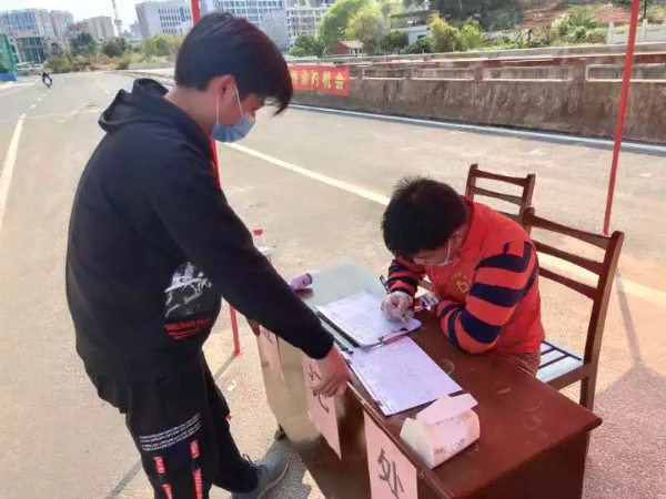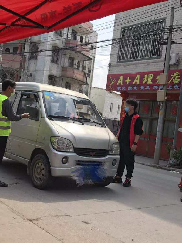 2月18号,来自梅州的19工监2班的甘董发同学正式加入家乡防控工作中。负责登记来回车辆的具体信息,测量并记录车内人员体温,认真落实每一步工作。跟从村委会一起感谢乡亲们的物资支持,劝告人们要做好预防措施,搞好卫生。