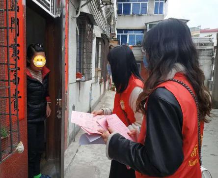 李文静逐户宣传防控知识和派发传单