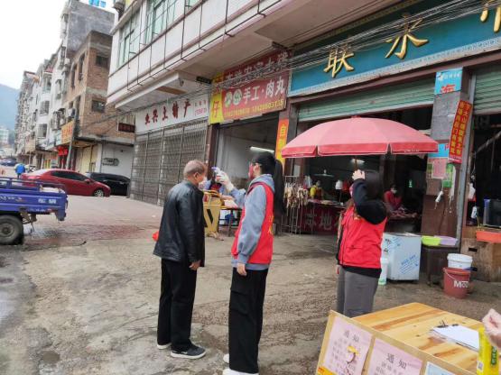 一张木桌,三把椅子,构成了韶关市新丰县的防疫检测点。今年的寒假注定是我院返乡的18商英6班李文静同学不平凡的寒假,身为一名入党积极分子,在该县疫情进入攻坚期之际,没有恐惧,没有沉默,她毅然在家乡大学生组织的志愿者协会群进行线上报名,自愿在抗击疫情的一线发光发热。疫情防控任务繁重,传染风险大。身边很多人表示不解,她却说:“作为一名大学生、入党积极分子,我觉得自己有责任去为家乡疫情防控做好后备力量,尽自己的绵薄之力时身上会有着“使命感”。她的做法虽然令家人感到担忧,但是家人在她的说服之下表示鼓励与支持。为了提高效率,她和其他志愿者采用分段换岗进行志愿服务活动,逐户走访排查,动员返乡人员及时登记备案,为居家群众测量体温。