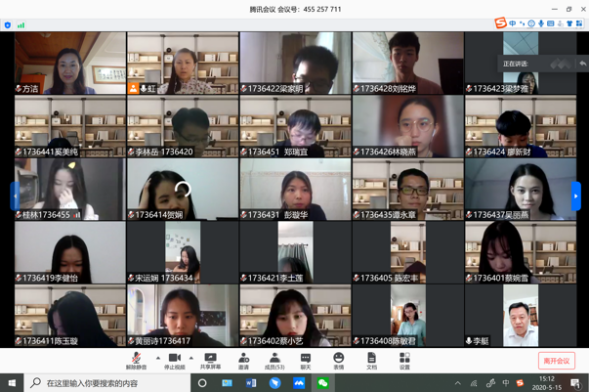 另一方面,虽然是第一次进行线上答辩,但根据超过两个月的线上教学,老师们对“主播”这一新职位都已经游刃有余。因此,根据线上教学的经验及多次测试的实践,学院决定运用腾讯会议平台,通过老师与学生线上“面对面交流”的方式完成今年的答辩,同时,也不断跟进答辩人员及秘书的安排情况,确保相关人员都了解自己的工作职责,并且及时对新老师进行培训。