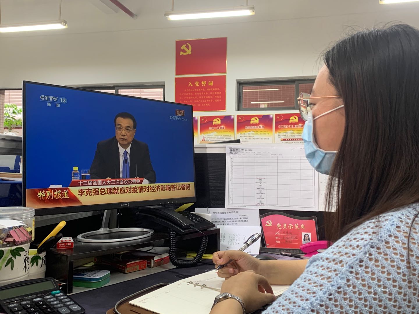 支部书记李慧颖观看记者会直播