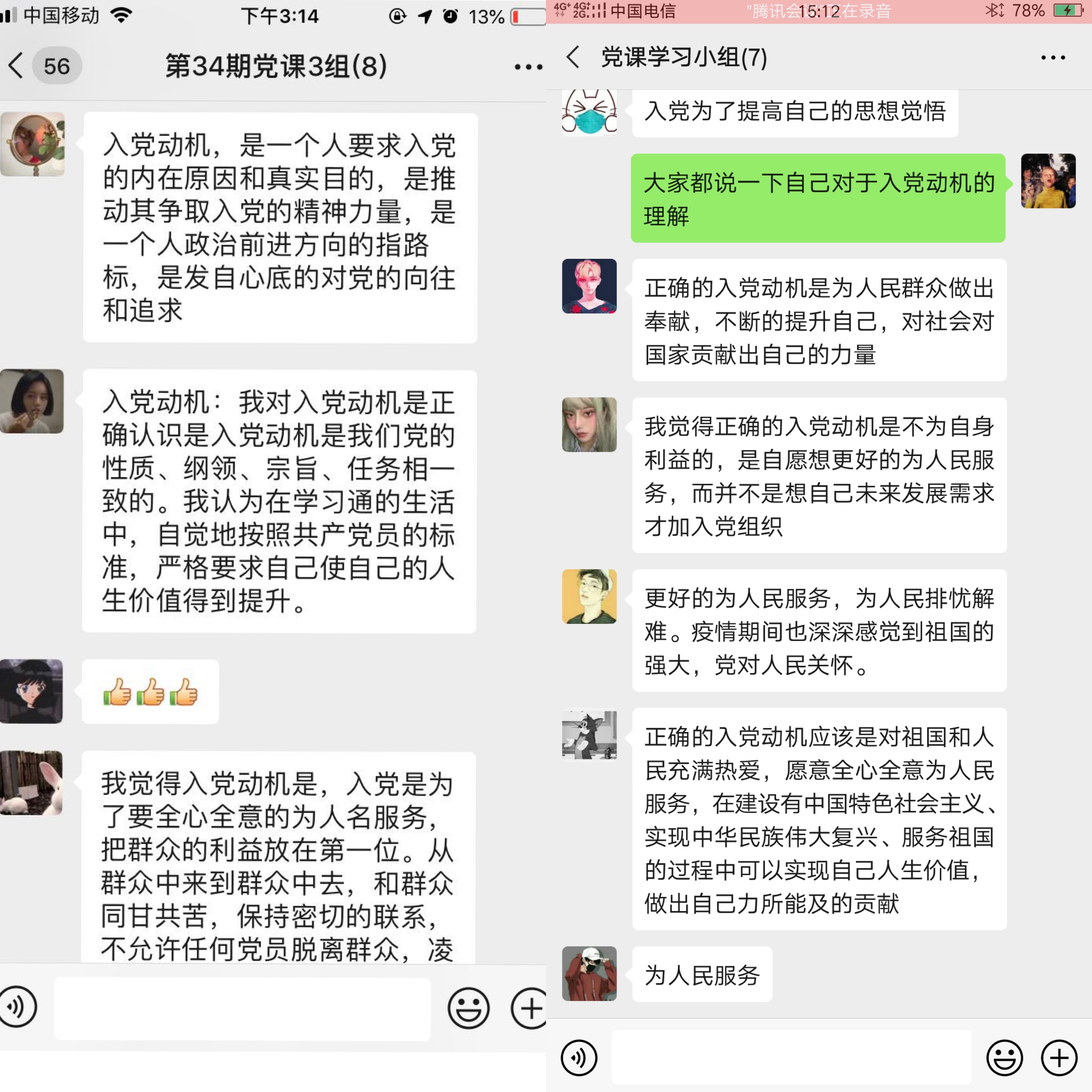 通过本次学习讨论会, 积极分子们不仅端正了入党动机,也更加坚定了入党的决心。因疫情原因,每一次的学习机会都来之不易,希望每一位积极分子能加强政治理论学习,坚定共产主义的远大理想,以合格党员、优秀党员的身份严格要求自己、约束自己的言行,在生活中各方面起到模范作用,发挥自身优势,在学生集体中树立模范,时时端正入党动机,处处不忘入党初心,早日成为一名合格的共产党员。