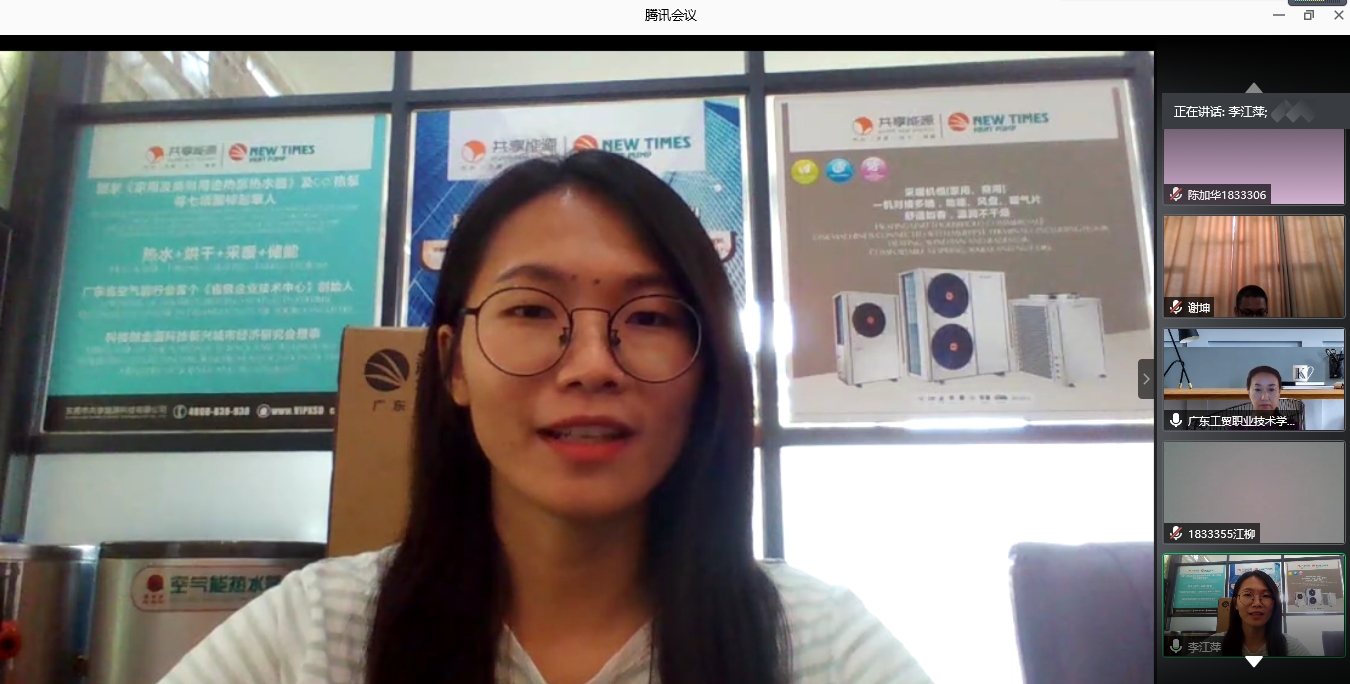在学校强力推进“双高”计划建设,推动产教学融合发展的契机下,为更加全面地提升人才培养水平,培养更多跨境电商行业实用性人才,加强学院与企业之间的深层次合作,由经济贸易学院国贸专业组织的“共享能源”跨境电商精英班宣讲会于2020年6月14日上午在线上举行。参加宣讲会的有:经贸学院副院长方洁、经贸学院商贸系主任蒋晶、国贸专业专任教师及广东工贸职业技术学院经贸学院18级、19级国贸专业同学;企业方出席嘉宾包括东莞市共享能源科技有限公司总经理谢坤、东莞市共享能源跨境电商专员曾平平、李江萍。其中,曾平平、李江萍为17级国贸专业毕业生,现就任于东莞市共享能源科技有限公司。此次宣讲会由经贸学院商贸系蒋晶主任主持。