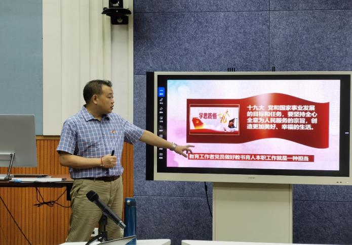 组织生活会的第二项,王斌书记讲授题为“不忘初心、牢记使命——疫情防控期间党员的历史使命”的微党课。王书记从什么是历史担当、承担怎样的历史担当、如何扛起历史担当三方面进行了讲授。中国共产党人的初心和使命,就是为中国人民谋幸福,为中华民族谋复兴。王书记指出岗位是最好的学校,责任是最严的老师,党员同志疫情期间冲上“第一线”,立足岗位,发挥先锋模范作用,就是担当。作为教育工作者党员,做好教书育人本职工作就是一种担当。