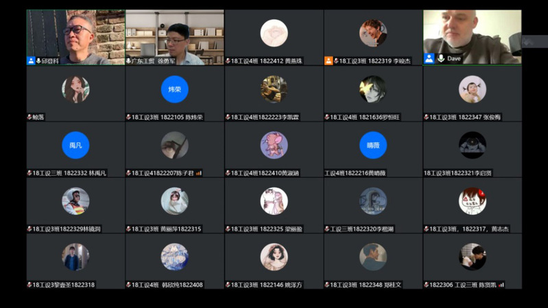本次工作坊实践教学时间为6月29日-7月12日,主要开展对象为工业设计专业18工设3、4班和部分产品设计方向100多名学生。由于疫情,以上教学在线上进行。本次教学由David教授、邱登科教授担任教学总指导,徐勇军院长总协调、工业设计教研室老师协同指导。本次工作坊落实了“一主线多协同多平台”的工作坊教学模式,以产品创意设计、制作、成果展示为任务主线,国外导师、协会专家、校内教师协同,直播平台、微信群平台、优幕课多平台教学模式。
