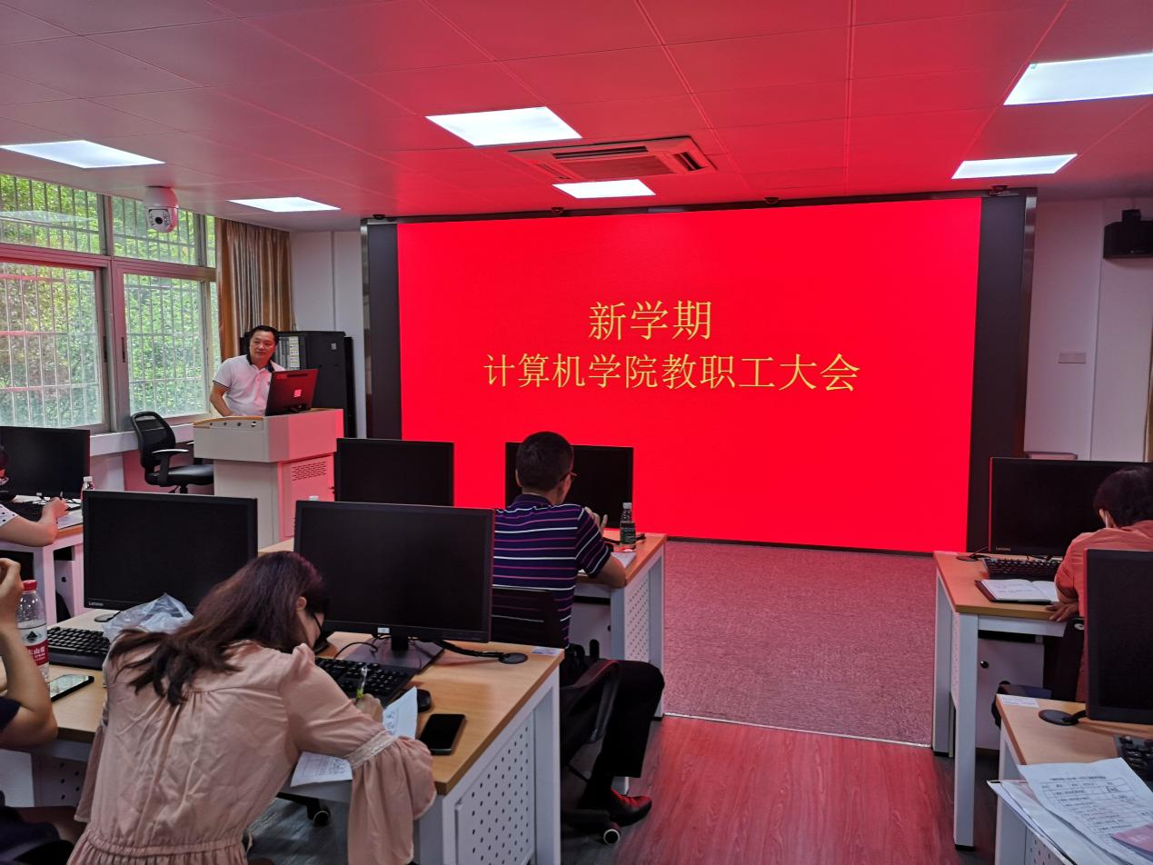 紧接着由计算机学院院长余棉水同志提出“任重道院 砥砺前行”,他首先总结了上学期教学科研等主要工作及取得的成绩,提出新学期工作思路,指出计算机学院将紧紧围绕学校发展大局及学校“十四五”开局规划,按照学校党委提出的目标与任务,结合本学院的实际情况扎实推进工作。会议最后,计算机学院副院长单家凌同志就开学初教学工作进行了布置。