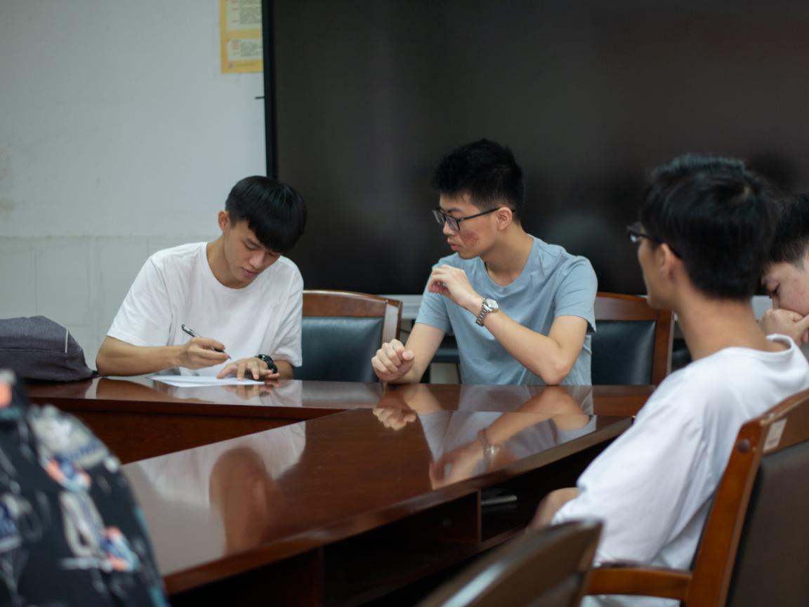 为了更好地培养计算机与信息工程学院双创实践中心技术部门的人才,与该中心合作的两个公司分别于9月12日、13日两日在教学楼104展开了人才选拔面试活动。其中,参与此次活动的面试官分别有来自广州市水木荷堂教育科技有限公司的总经理方木瑞、技术总监赖观驱和来自广州欢创人力资源集团有限公司的技术人员姚泽彬、周禹全。