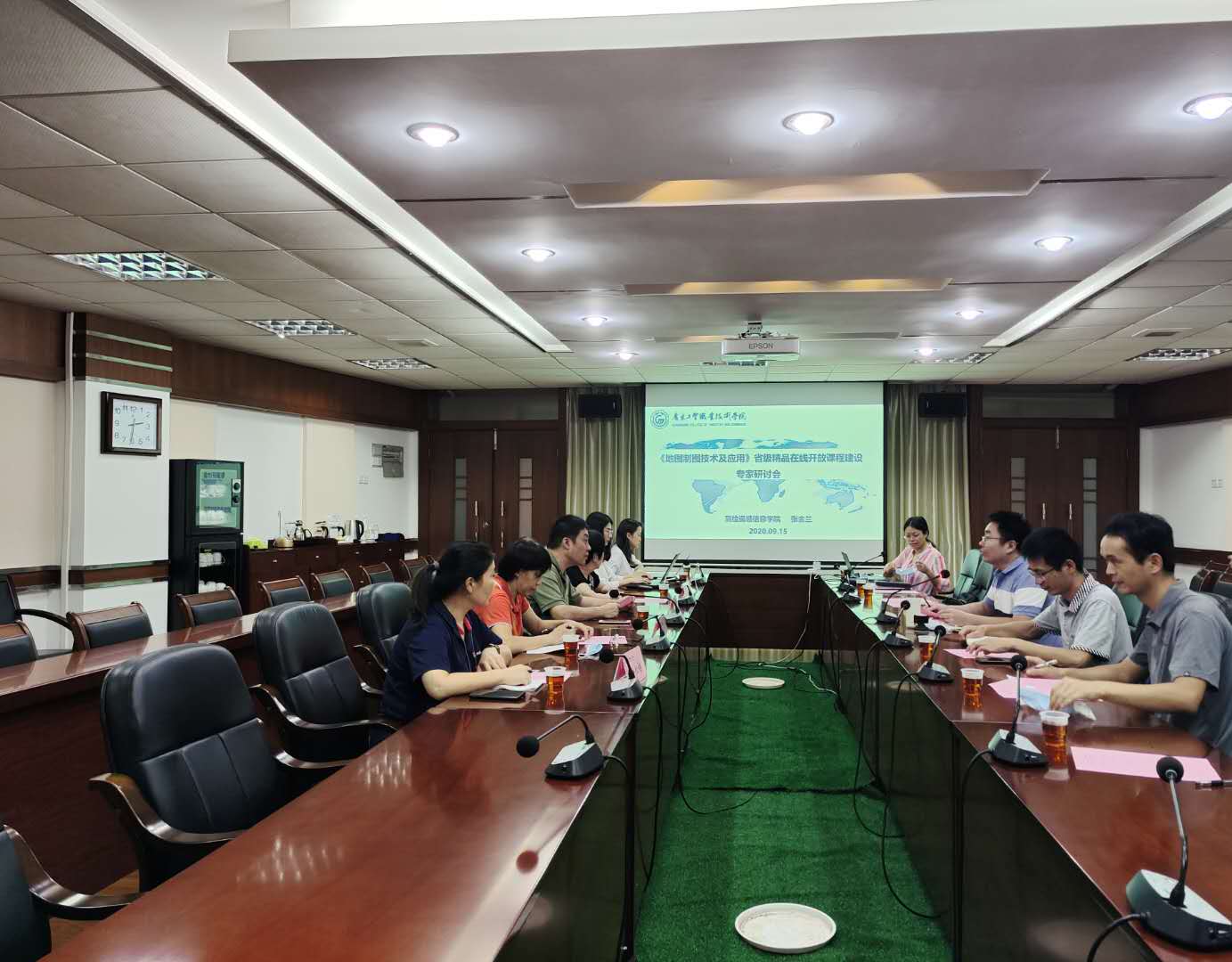 9月15日下午,测绘遥感信息学院于学校西区中心会议室举办《地图制图技术及应用》省级精品在线开放课程建设专家研讨会。本次会议很荣幸邀请到了来自高校和企业的六位领导和专家。他们分别是广东交通职业技术学院教务处处长、教授王劲松,广东省国土资源技术中心教授级高工曾菲,广东省地图院地图制图部主任、高级工程师何忠莲,广州智讯诚地理信息科技有限公司副总经理孙松梅,北京超图软件股份有限公司华南平台客户中心行业总监陈锦慧,北京超图软件股份有限公司华南平台客户中心技术副总监李珍珍。测绘遥感信息学院副院长高照忠,地理信息系主任黄铁兰,办公室主任林雄波,地图制图技术及应用课程团队教师张金兰、喻怀义、王婷,测绘遥感信息学院骨干教师刘丽、常德娥、魏海霞等参加研讨会。