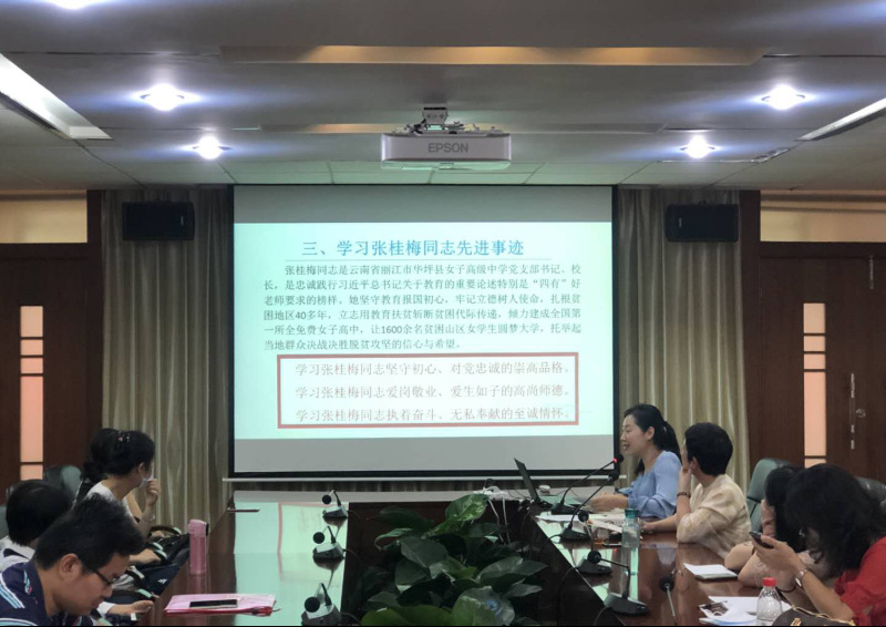 第三议程,学习了张桂梅同志的先进事迹。全体教职工观看了张桂梅同志的事迹视频,都不禁泪盈眶,为其在贫困山区任教期间,数十年如一日,爱岗敬业,坚韧执着,无私忘我,全身心投入教育事业和慈善事业的所感动,纷纷表示我们要以之为榜样,热爱教育事业,立德树人,争取在平凡的岗位上做出不平凡的成绩,展现了新时代人民教师的风采。