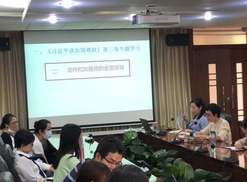 第一议程,党总支书记周清莲及副院长倪春丽带领全体教职工学习了《习近平谈治国理政》第三卷第二专题——坚持和加强党的全面领导。这一专题集中反映了习近平总书记关于新时代坚持和加强党的全面领导的重要思想,具有很强的思想性、理论性、现实性、指导性。