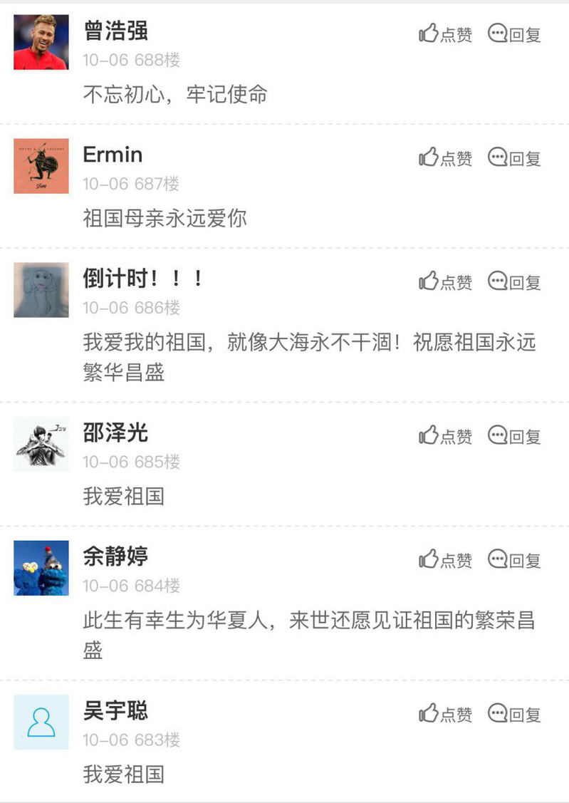 本次活动通过易班轻应用开展,学院全体学生可以到线上“表白墙”留言,表达对祖国的热爱。推文发布后,同学们纷纷在“表白墙”写下自己对祖国真挚的祝福,展现中华儿女喜迎双节的激动和自豪。截止活动结束,有千余名同学参与。