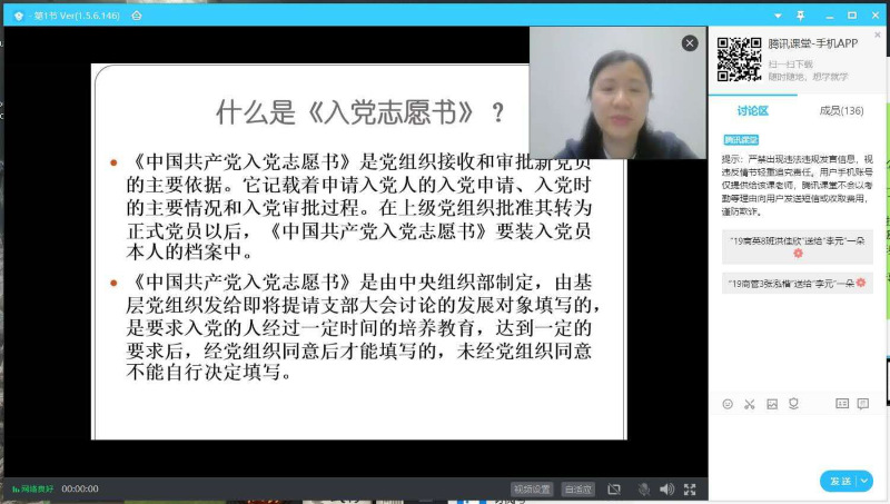 为严格发展党员工作程序,保障发展党员工作质量,11月7日晚,测绘遥感信息学院党总支副书记李元为2020年第二期发展对象开展线上专题培训,重点讲解入党志愿书的填写和观看党性教育片。