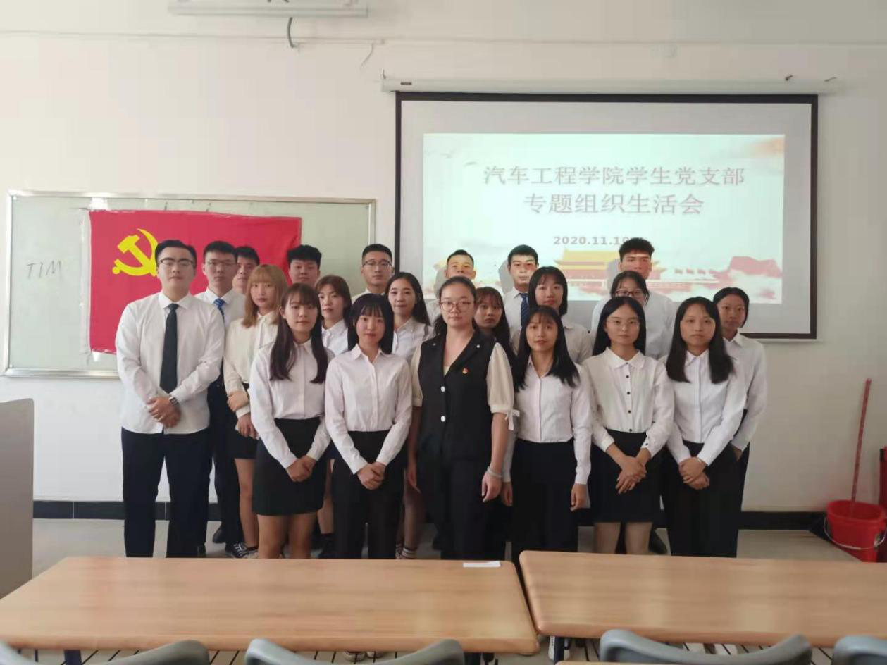 为了深入学习贯彻习近平新时代中国特色社会主义思想,推动全面从严治党向纵深发展,根据学校《2020年纪律教育学习活动实施方案》部署要求,汽车工程学院学生党支部于2020年11月10日在明德楼1区413开展纪律教育月专题组织生活会。本次会议由支部书记刘彩云主持,支部全体党员参加。本次组织生活会的目的是剖析存在的问题、明确整改方向,全面推进素质教育。会议议程包括三个部分,集中学习《习近平谈治国理政》第三卷专题七和专题八、开展批评和自我批评、党员纪律教育观看党风党纪教育影片。