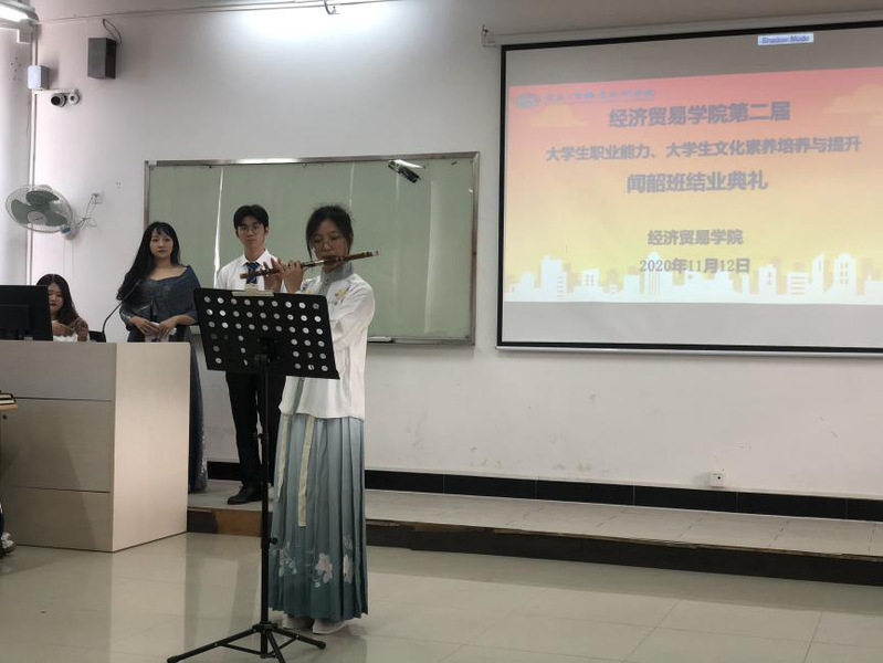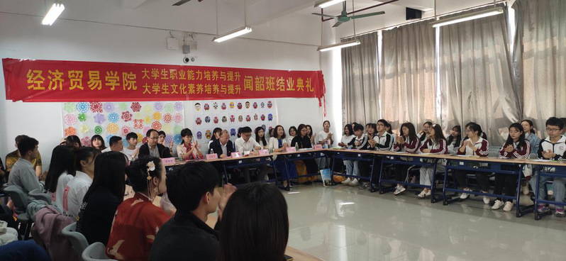 在全国各族人民认真学习党的十九届五中全会精神,为全面实现小康社会努力奋斗的大好形势下,11月12日下午,学院在明德楼1-410又迎来了经贸学院第二届“闻韶班”的结业典礼。出席活动的有广东工贸职业技术学院党委副书记、纪委书记夏韩辉、经贸学院党总支书记李繁、院长邱秀芳、办公室主任邓彩云、国际贸易专任教师方洁教授、电子商务专任教师李艇老师、办公室教学秘书潘嘉琪老师,经贸学院第二届闻韶特色班学生、手工编织特色班同学。值得一提是,此次结业典礼恰逢江西财经职业学院经济贸易学院行政办主任带领10名同学到我校开展校校交流项目,一同参加了此次闻韶班结业仪式活动。