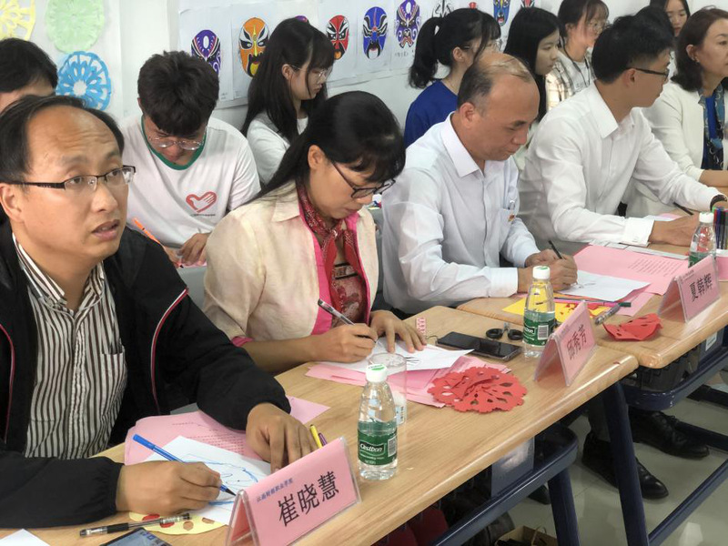 接着,师生共同展示丰富学习成果。李艇老师先是向全体师生演示了剪纸艺术和脸谱艺术,亲自进行现场教学和示范,夏书记、李书记、邱院长、崔主任等老师与同学们都拿起了剪刀、画笔,充分发挥想象力,剪出形态各异的窗花,画出表情丰富的脸谱。一把把剪刀轻轻裁出一幅幅精美的图案,一张张彩色的纸在一双双巧手来回的折叠。