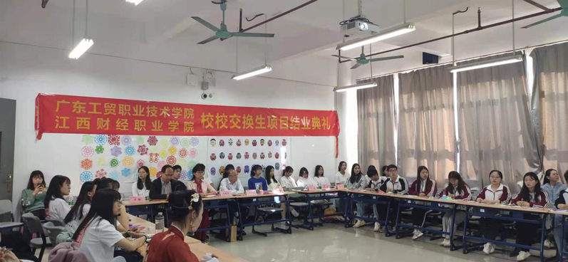 经济贸易学院党总书记李繁、院长邱秀芳、党总支副书记龚云、副院长蒋晶及全体党政班子、行政人员热情的接待了江西财经职业学院的全体师生,并共同制定、安排了一周详细周密的学习行程,其中包括参与具有学院特色的晨习会及欢迎仪式、电子商务高水平专业经验交流分享、课程思政交流;参观走访明德思政体验基地;观摩学习了《现代统计技术》、《跨境电商》、《多媒体应用》等课程的教学情况;实际参与(广州新拓、英氏婴儿用品、广州一臣、广州诚恒)校企合作双十一实训项目实操;与广东工贸学生会、电子商务协会进行了社团活动、创新创业大赛、电子商务省赛交流活动;还一同参与了经贸学院第二届闻韶班的结业典礼等。