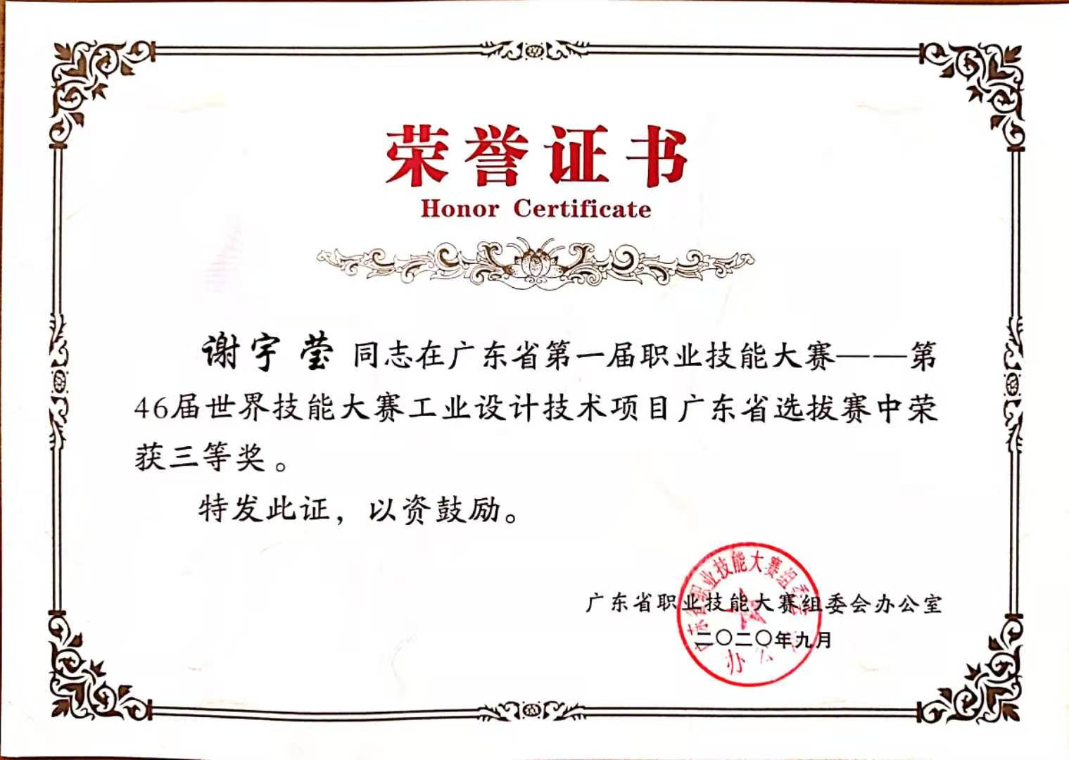 9月5日-10日,由广东省人力资源和社会保障厅主办、深圳市人力资源和社会保障局协办、深圳技师学院承办的2020年广东省第一届职业技能大赛(第46届世界技能大赛-工业设计项目竞赛)如期举行。全省共30余所职业院校参与了本次比赛的赛前选拔,经过省厅等多位专家的严格评审,共有12所院校获得参赛资格,我校机电工程学院18级工业设计1班学子谢宇莹成功入选、并顺利参加了本次比赛。