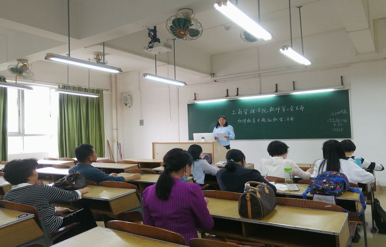 根据《中共广东工贸职业技术学院2020年纪律教育学习活动实施方案》的部署要求,11月3日下午,工商管理学院教师第一、第二党支部分别在天河校区综合楼501、502课室召开纪律教育专题组织生活会。会议分别由教师第一党支部书记陈植乔、教师第二党支部书记梁巧丽主持,工商管理学院党总支书记周清莲、副书记谢宏祥、副院长倪春丽分别以普通党员身份参加了会议。