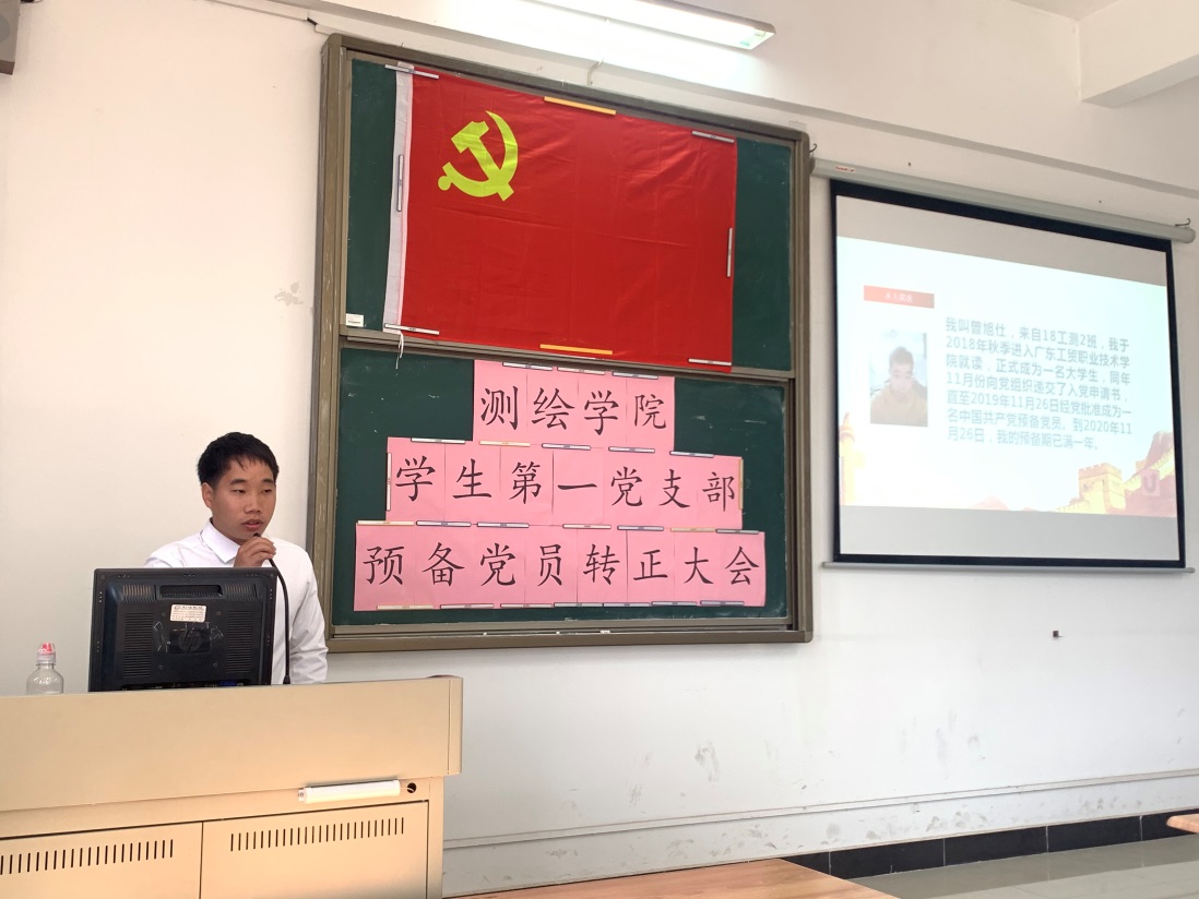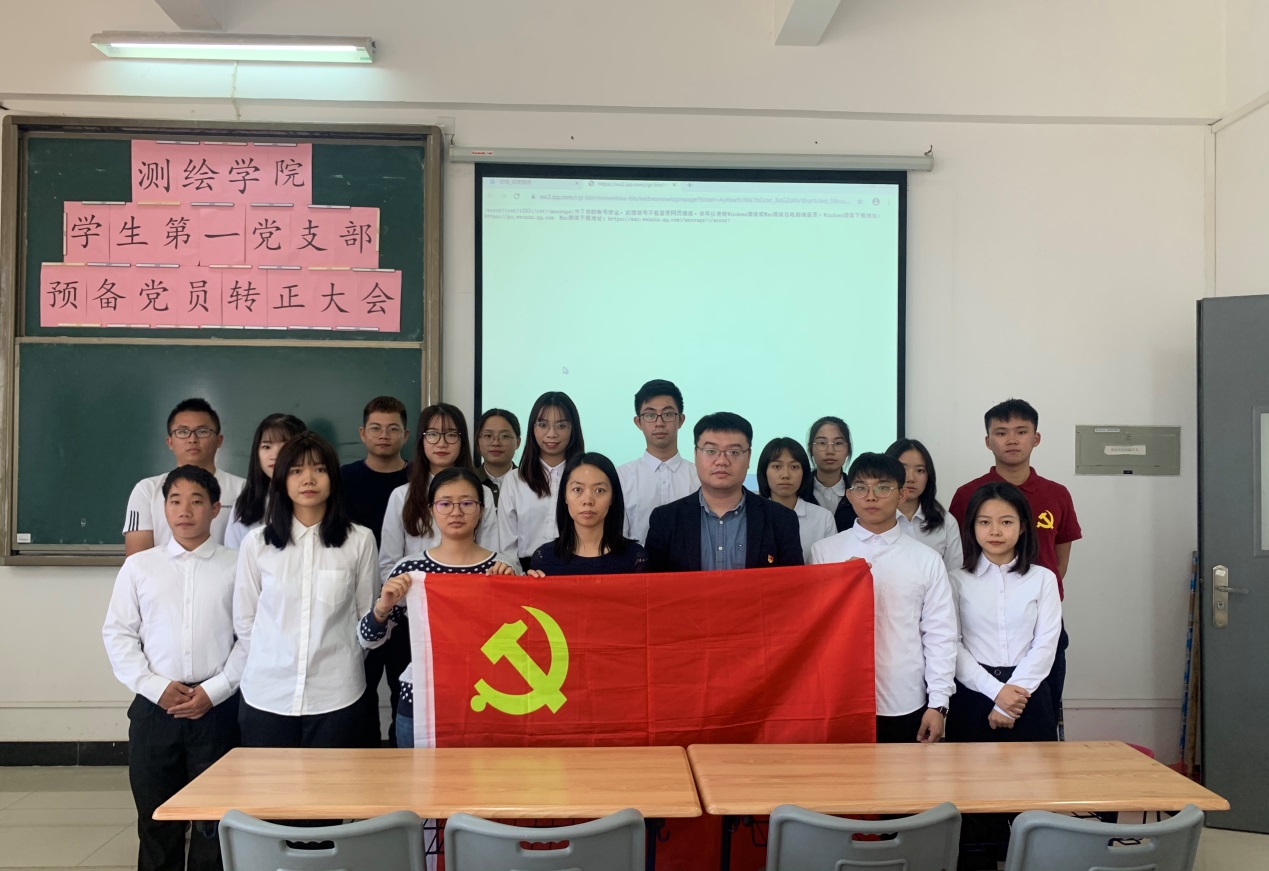 11月27日下午13:00,测绘遥感信息学院学生第一党支部在明德楼1-412召开预备党员转正会议,讨论了八名预备党员转正问题,会议由支部书记张玉荷主持,支部委员陈君浩、吴笛参加了会议。
