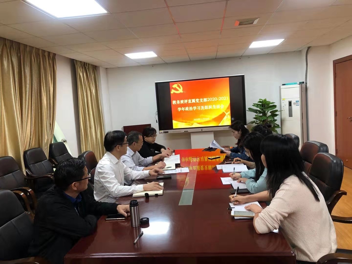 根据《中共广东工贸职业技术学院委员会2020年纪律教育学习月活动实施方案》以及《中共广东工贸职业技术学院党员组织生活、教职工政治学习及工会活动安排(2020年秋季学期)》等文件精神,11月24日下午,教务质评直属党支部在西区第一会议室开展了以深入学习党的十九届五中全会精神为主题的政治学习及组织生活会。会议由教务质评直属党支部书记王平主持,支部全体党员参加了会议。