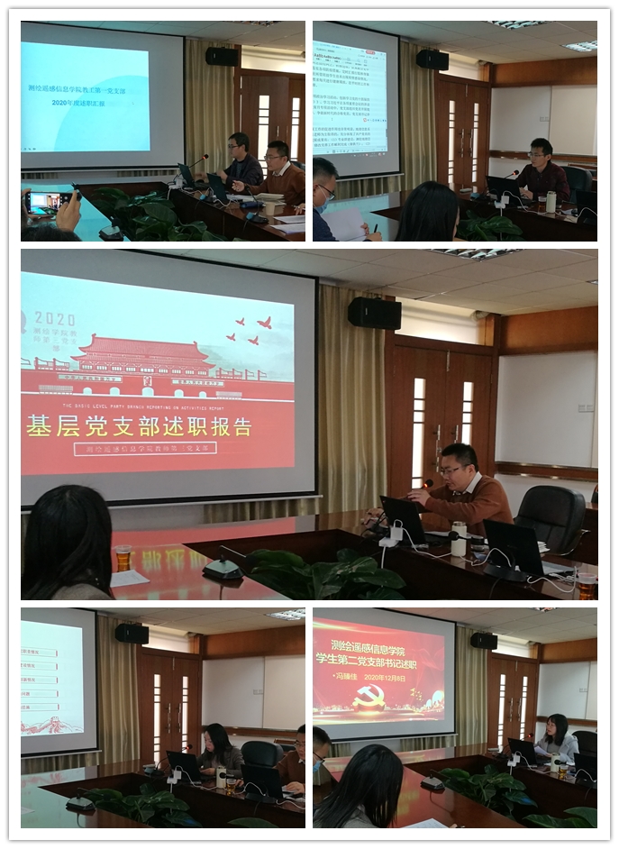 为全面贯彻习近平新时代中国特色社会主义思想,把学校《加强党的基层组织建设三年行动计划(2018-2020年)实施方案》落到实处。根据《关于开展2020年学校基层党组织书记抓党建述职评议考核工作的通知》(粤工贸院党字【2020】58号)文件要求,12月8日下午,测绘遥感信息学院党总支在天河校区中心会议室开展2020年度师生党支部书记述职考核会议,会议由测绘学院党总支书记速云中主持,学院党总支副书记李元、各师生党支部书记、支委参加了会议。