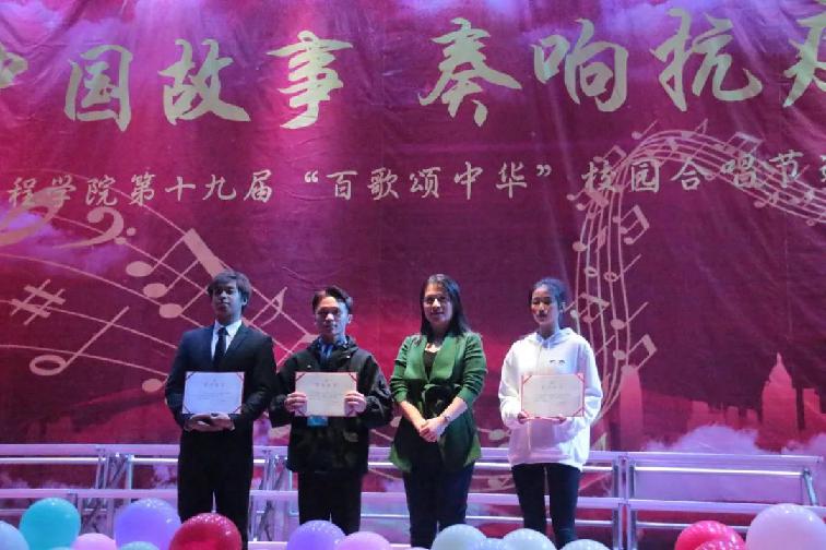 汽车工程学院"百歌颂中华"比赛在观众热烈欢迎的掌声中拉开了帷幕。各班级同学身着统一服装,动作整齐划一,以嘹亮的歌声、饱满的精神状态来展示他们的练习成果。激烈高亢的《我的中国心》,宛转悠扬的《我和我的祖国》,气势磅礴的《爱我中华》,一曲曲经典红歌唱出了同学们对党和国家的热爱,唱出了当代大学生的青春风采。