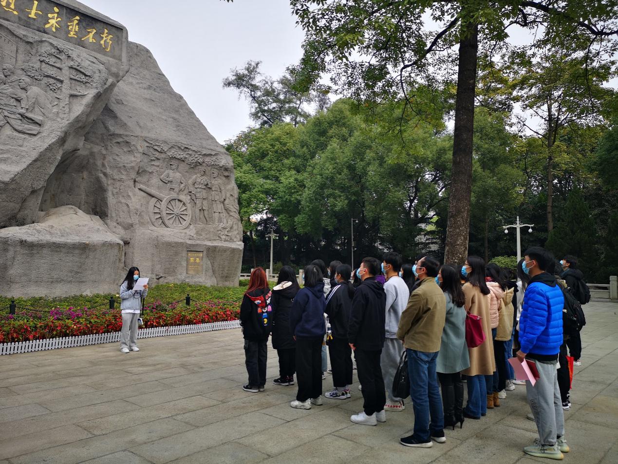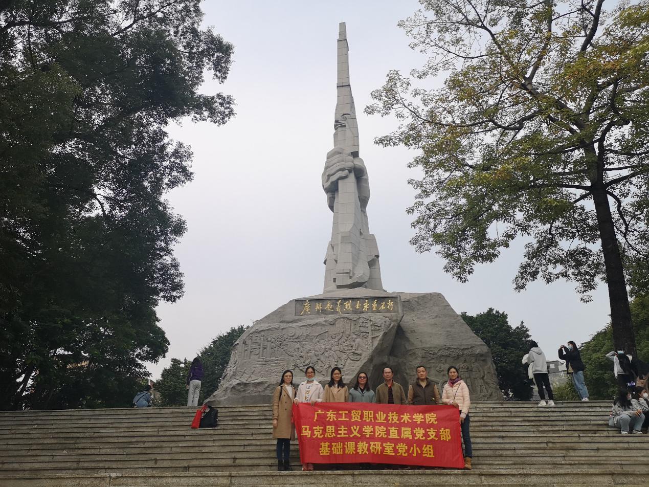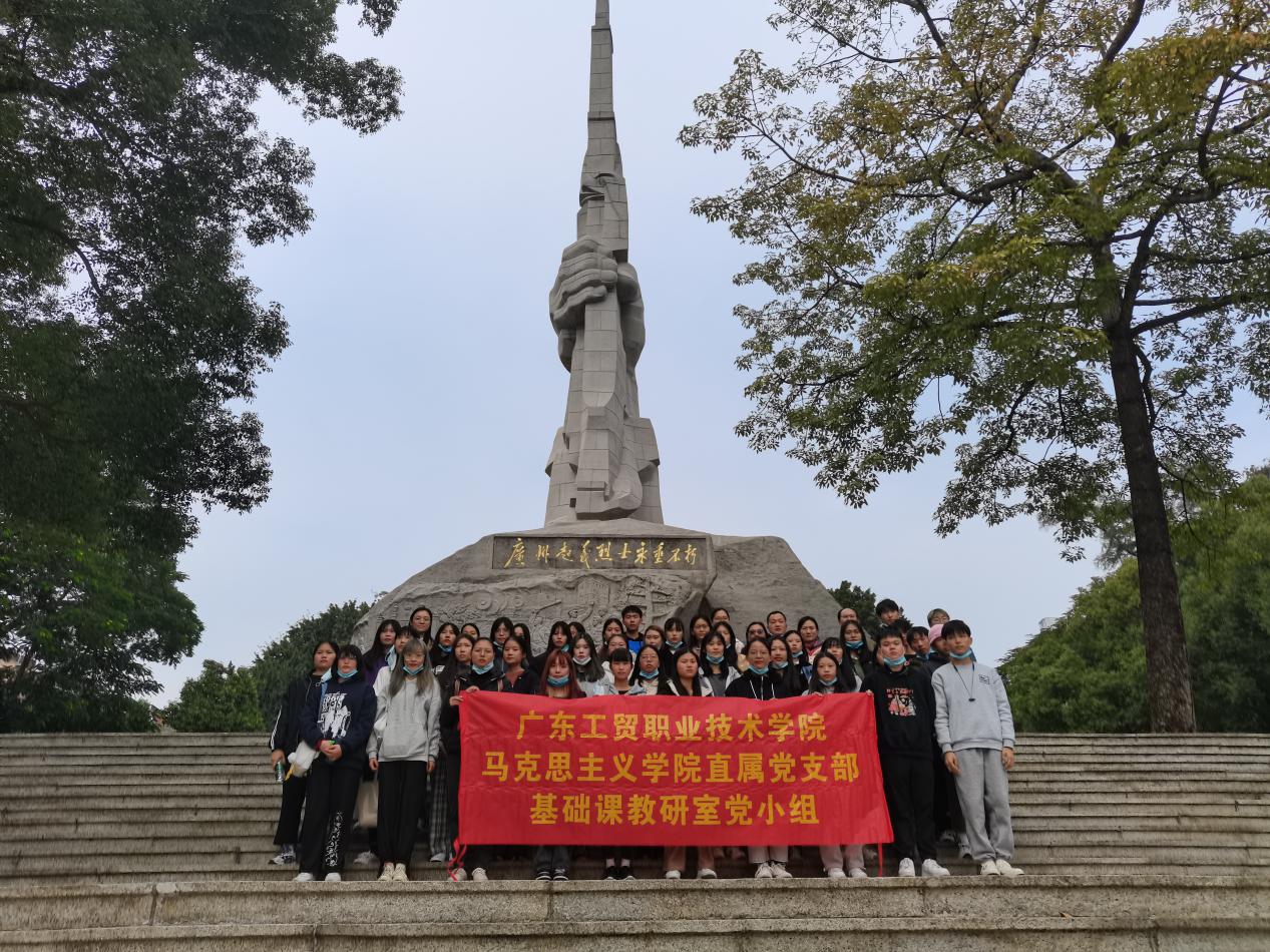 为贯彻党中央关于广泛深入开展党史、新中国史、改革开放史与社会主义发展的部署要求,把“四史”学习教育与大学思政课教学有机结合起来,引导大学生熟知党史国史,帮助大学生提升思想政治素养、坚定理想信念,从学习“四史”中加深对习近平新时代中国特色社会主义思想的理解与对党的初心使命的感悟,做到不忘历史、不忘初心,知史爱党,知史爱国,马克思主义学院“基础课”党小组、教研室于2020年12月22日下午组织40名《思想道德修养与法律基础》课程学生代表赴广州起义烈士陵园,开展“瞻仰先烈传承红色基因,珍惜当下思我辈之责任”主题实践活动,马克思主义学院“基础课”党小组、教研室全体教师参加活动。