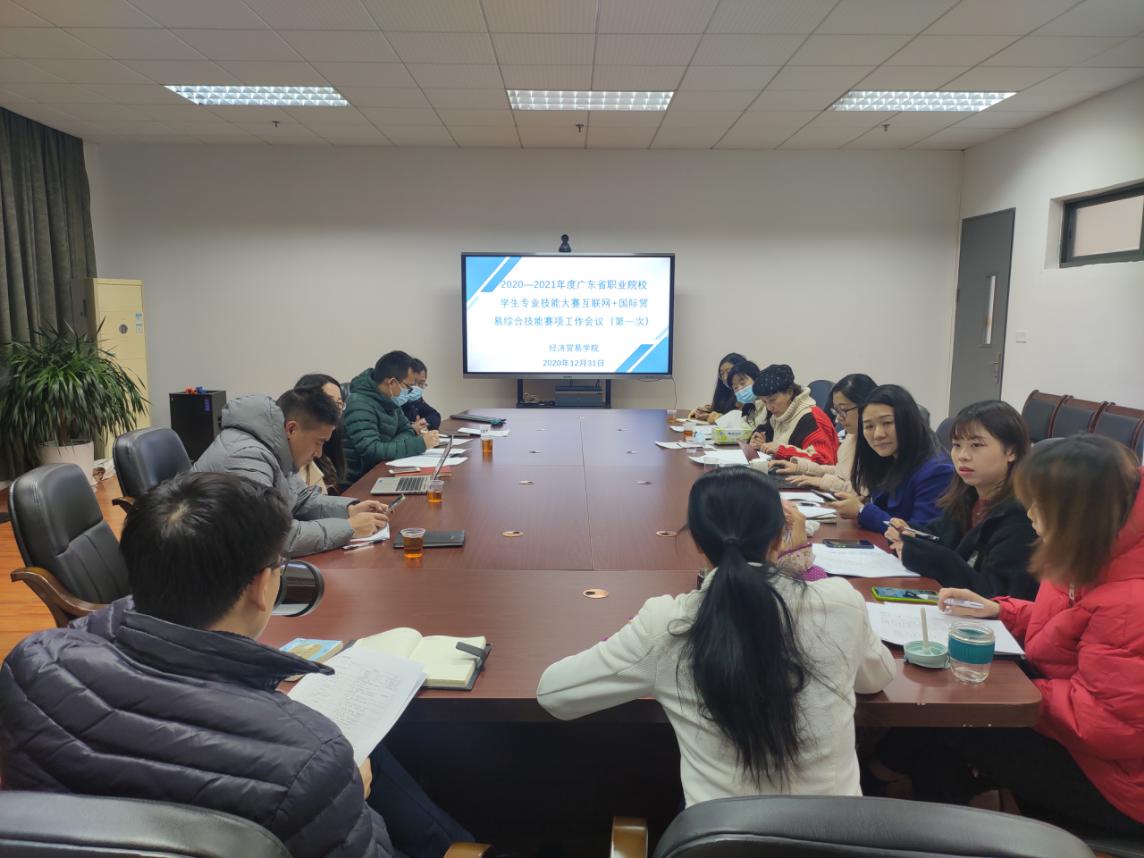 12月31日上午,2020-2021年度广东省职业院校学生专业技能大赛“互联网+国际贸易综合技能”赛项承办工作第一次会议在我校白云校区明德楼1-308召开。经济贸易学院党总支书记李繁、院长邱秀芳、党总支副书记龚云、副院长蒋晶及相关工作组人员参加了会议。