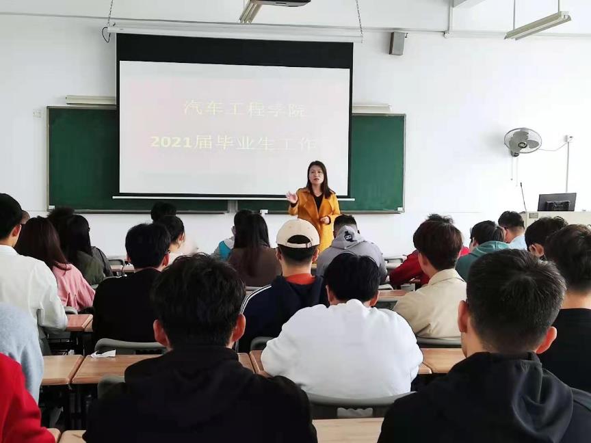 3月8日上午,汽车工程学院召开2021届返校毕业班学生就业促进会,学院党总支副书记欧敏、辅导员陈宏伟、陈莹颖与全体返校毕业班学生参加了本次会议。
