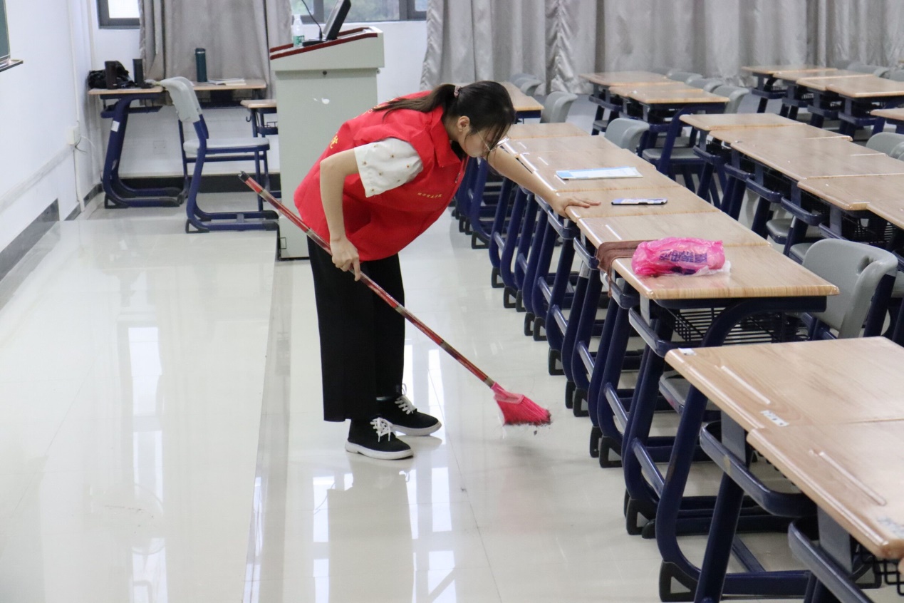 志愿者正在清扫课室
