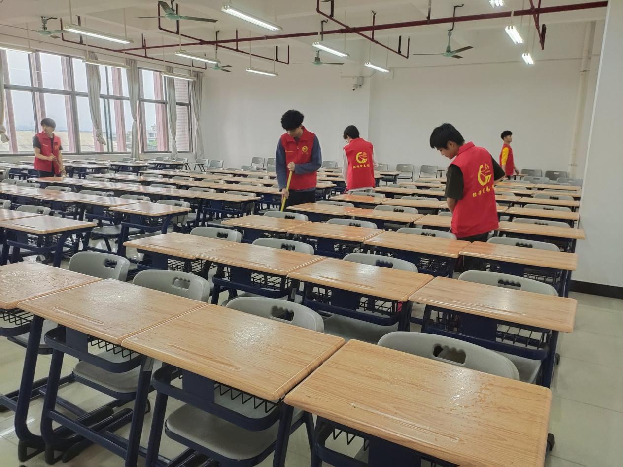 志愿者们正在打扫教室