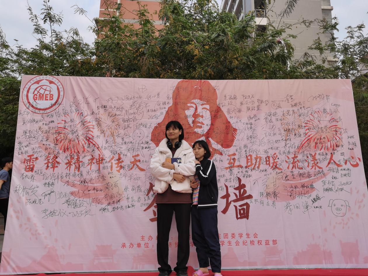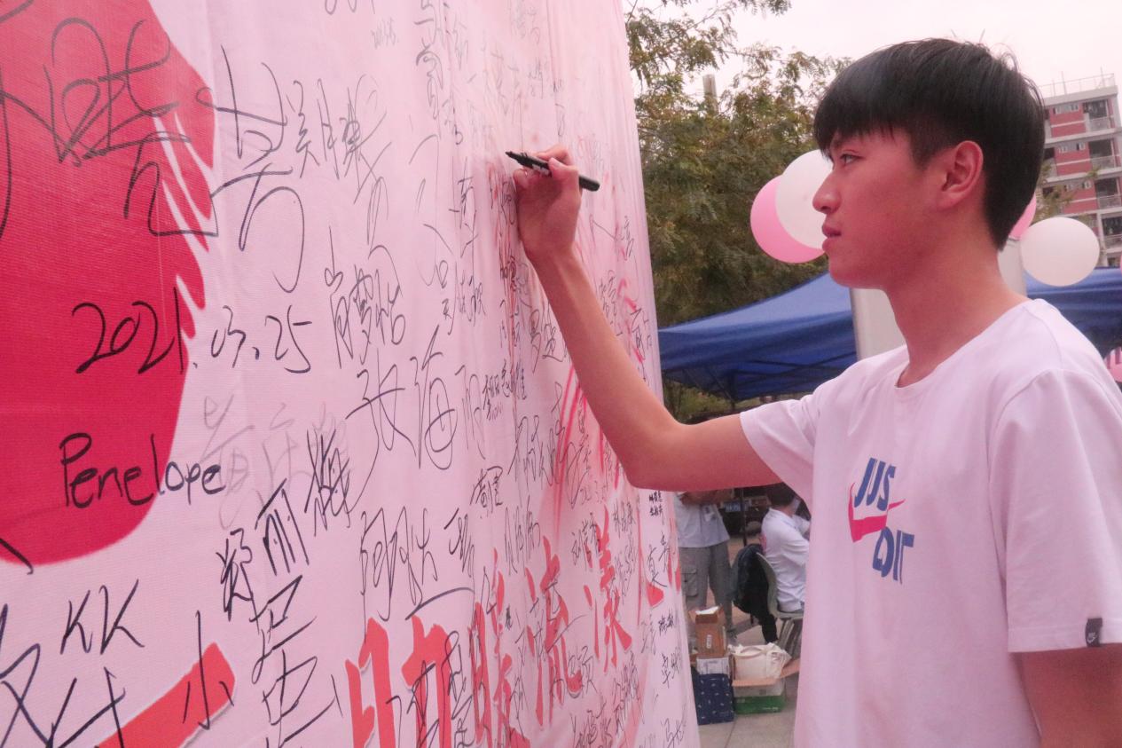 小的善良总在发生,小的温暖总让人感动。路过活动现场的同学们经过工作人员的介绍,了解到雷锋月活动目的,纷纷在签名幕布前驻足并留下自己的名字,为学雷锋、做好事进行承诺,并借此希望彼此互相监督,形成雷锋精神,把活动宗旨深深刻在心中。