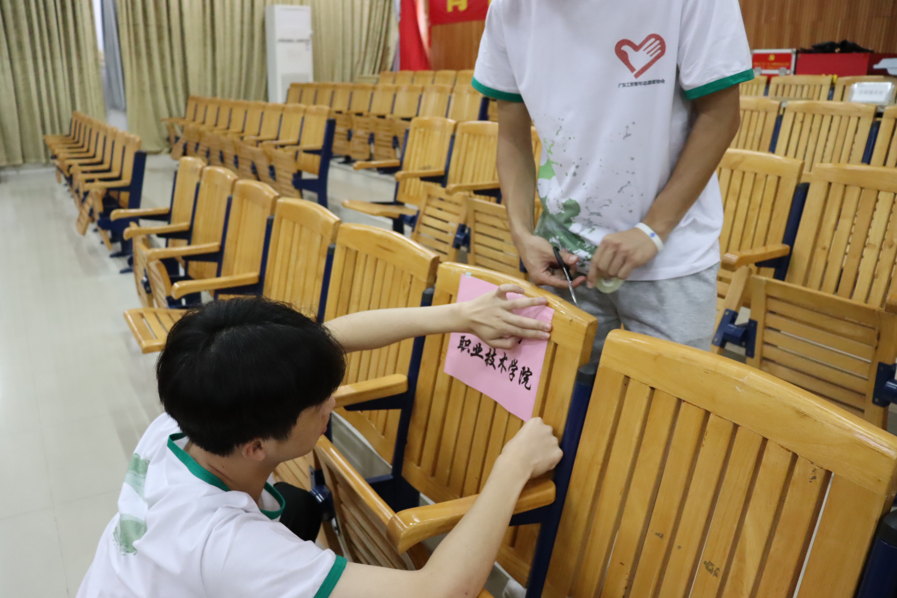 4月8日上午,志愿者们集合后进行场地布置物资的分发领取并分为数组分开进行大赛场地的布置。插彩旗,贴标签,布场工作进行的井然有序。