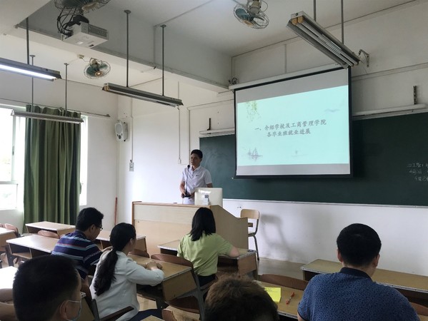 4月13日下午,工商管理学院在天河校区东区504召开了2021届毕业生就业推进大会。会议由工商管理学院党总支副书记谢宏祥主持,党总支书记周清莲和毕业班班主任、辅导员参加了此次会议。