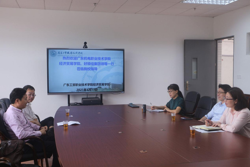4月13日上午,广东机电职业技术学院经济贸易学院副院长丁修平、好顺佳集团高校事业部总监刘金一行到我校参观交流。我院党总支书记李繁、学院院长邱秀芳对丁修平院长一行的到来表示了热烈的欢迎。