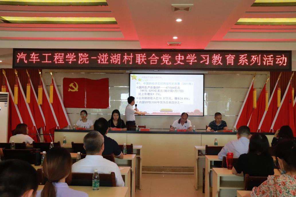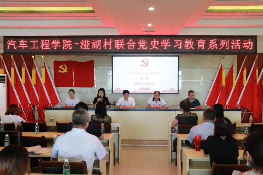 根据学院关于党史教育的工作部署,4月13日下午,汽车工程学院党总支联合钟落潭镇湴湖村委员会在湴湖村会议室联合召开党史学习教育系列活动之书记党课入基层活动。党课由汽车工程学院党总支书记彭卫东主讲,汽车工程学院党总支副书记欧敏、副院长潘梦鹞、湴湖村委员会副书记朱国安、委员朱艳梅、朱镇权、林玮昕以及汽车工程学院全体师生党员和湴湖村部分党员参加了党课学习。