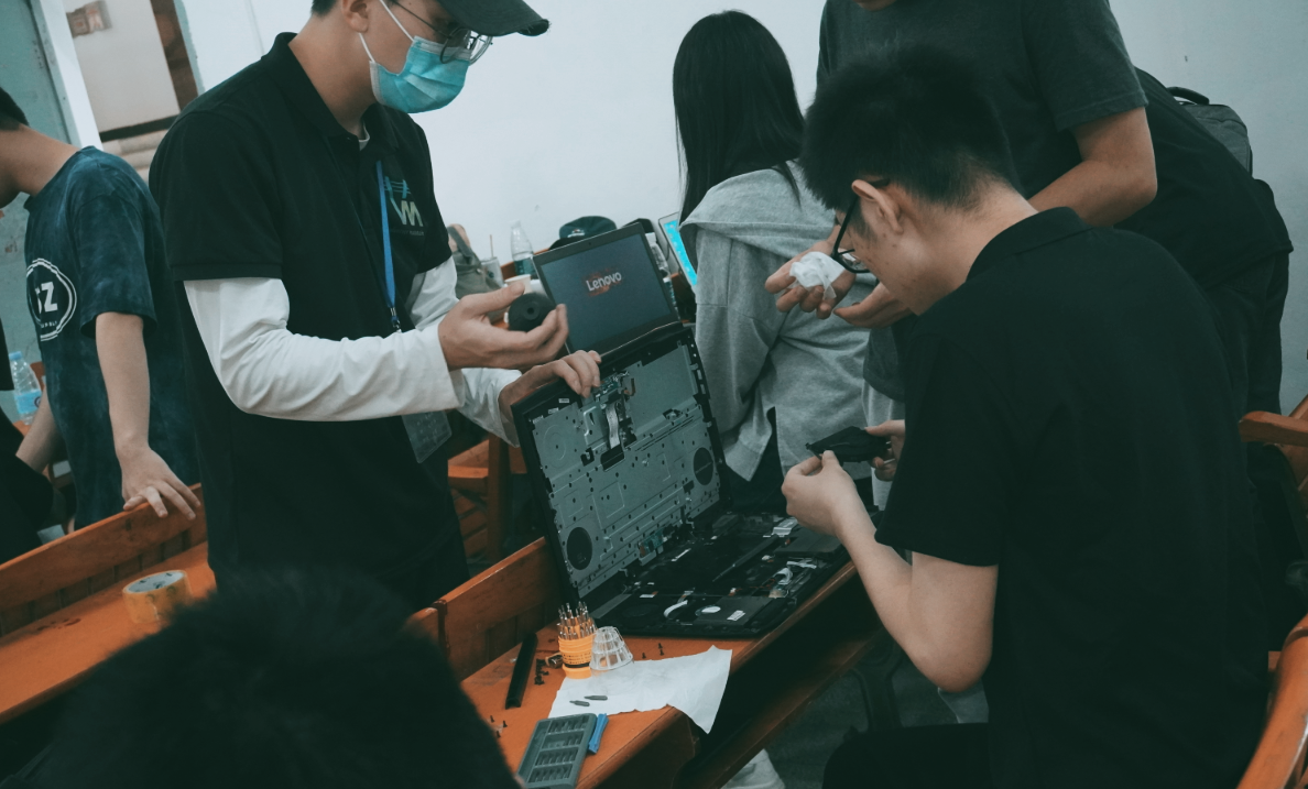 电脑义务维修队在白云校区子衿广场开展电脑维修活动
