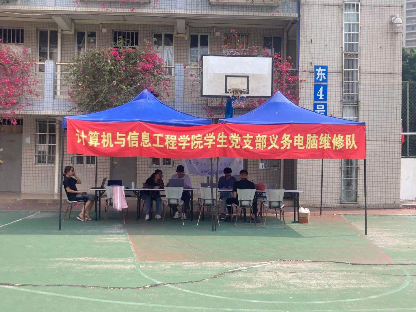 自党史学习教育开展以来,计算机与信息工程学院学生第二党支部组织党员学生在天河校区篮球场、白云校区子衿广场分别开展了8次电脑维修活动、进宿舍维修500余次,通过线上线下的形式,共为1000余名师生解决了电脑问题。