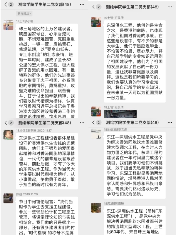 学生党员们收看节目后进行了热烈的讨论,他们纷纷表示要学习东深供水工程建设者群体不惧挑战、敢于担当、无私奉献的精神,以时代楷模之光照亮前行之路,为粤港澳大湾区的发展贡献自己的力量。