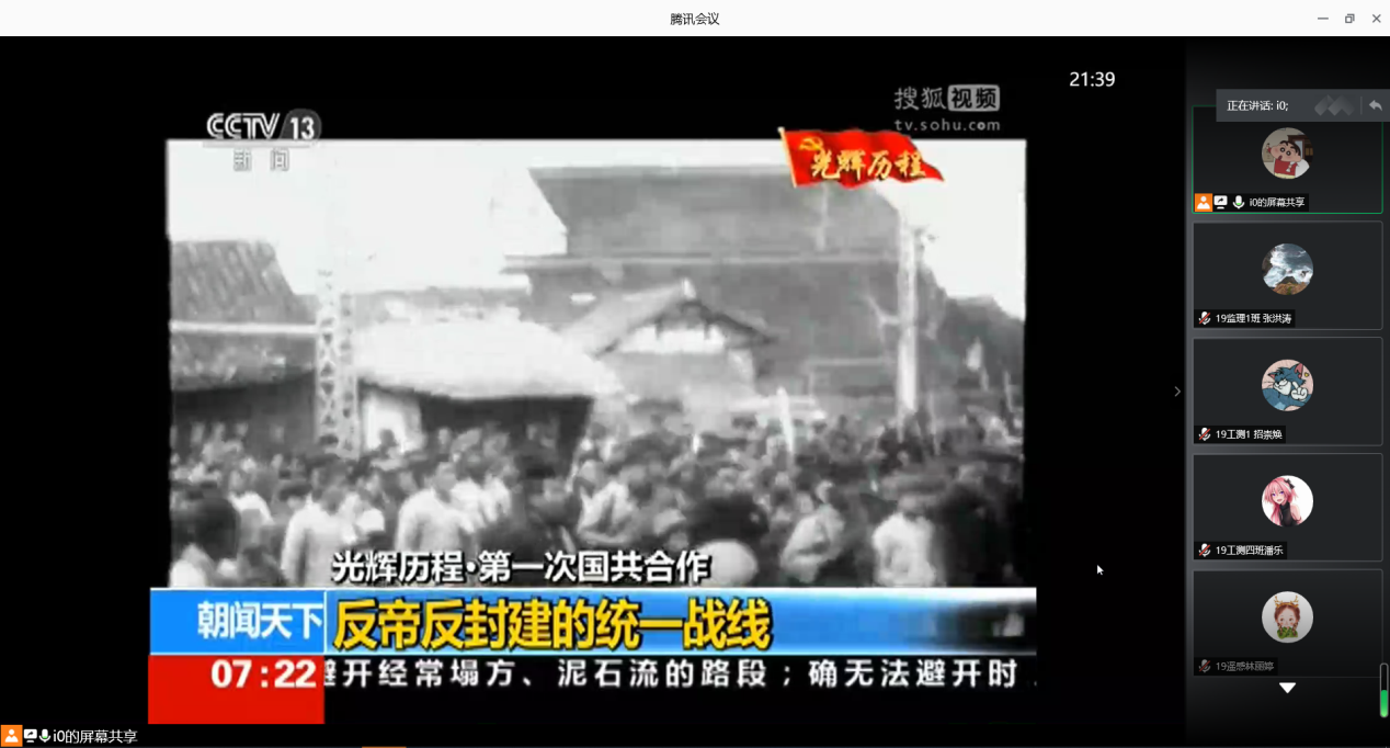 为庆祝中国共产党成立100周年,结合支部学生党员基本分散在各地实习的实际情况,测绘遥感信息学院学生第一党支部通过腾讯会议和微信“移动微课堂”召开线上党史学习教育。4月24日晚,支部开展了第五次党史学习,由学生第一党支部书记张玉荷同志主持,支部全体学生党员参会。