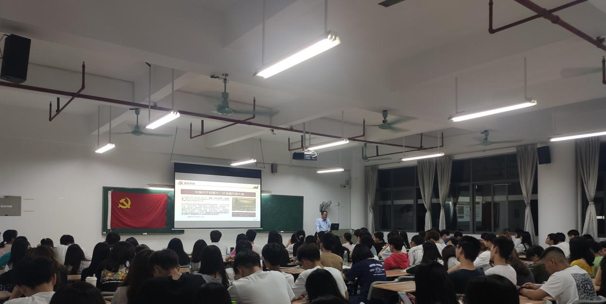 为深入贯彻落实习近平总书记在党史学习教育动员大会上的重要讲话精神,机电工程学院4月29日晚7点在明德楼2区403教室开展了机电工程学院党总支书记思政第一课,学院119名入党积极分子参加了此次学习。本次学习的主题是《砥砺奋进新时代—开放和社会主义现代化建设时期》,由机电工程学院党总支书记邵超城主讲。